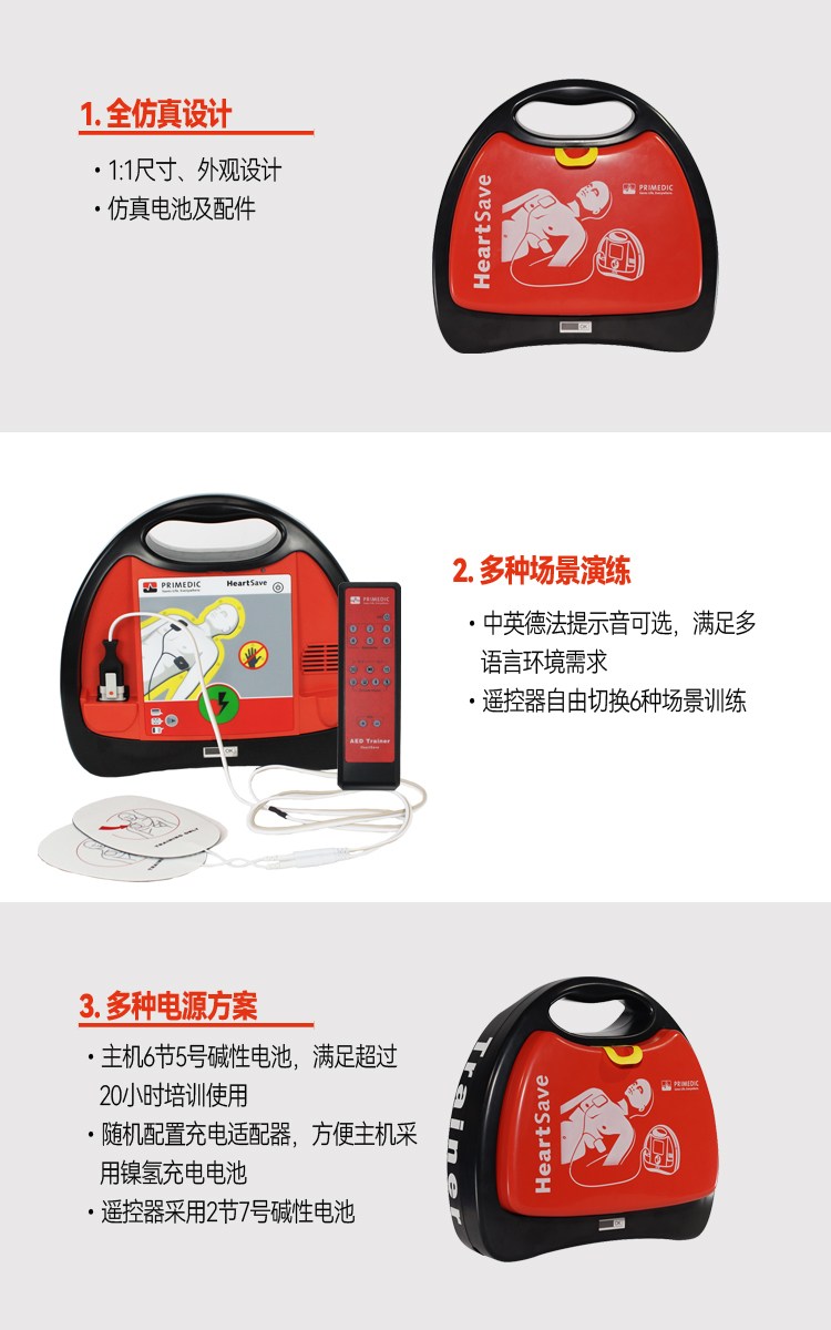 普美康PRIMEDIC HeartSave AED Trainer教学训练机,采用通用性电极片,经久耐用。